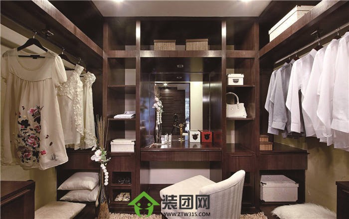 适合对象:开放式衣帽间于那些希望在一个大空间内解决所有功能的年轻人。但即便是开敞式也要有一定的私密性,以避免使大空间显得零乱。