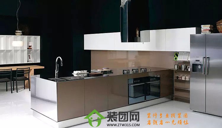 4、不锈钢台面:即不锈钢金属材质的厨房台面。